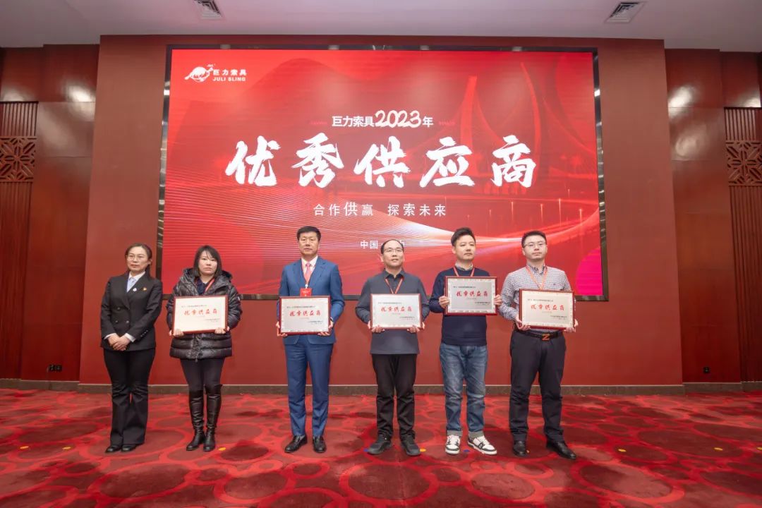 2023年,巨力索具和供给商火伴在高层互访、产物开辟、手艺同享等范畴获得了诸多功效。为感激供给商在品德、立异、保供及协作等方面作出的凸起进献,本次大会向10家供给商授与了“优异供给商”奖项。