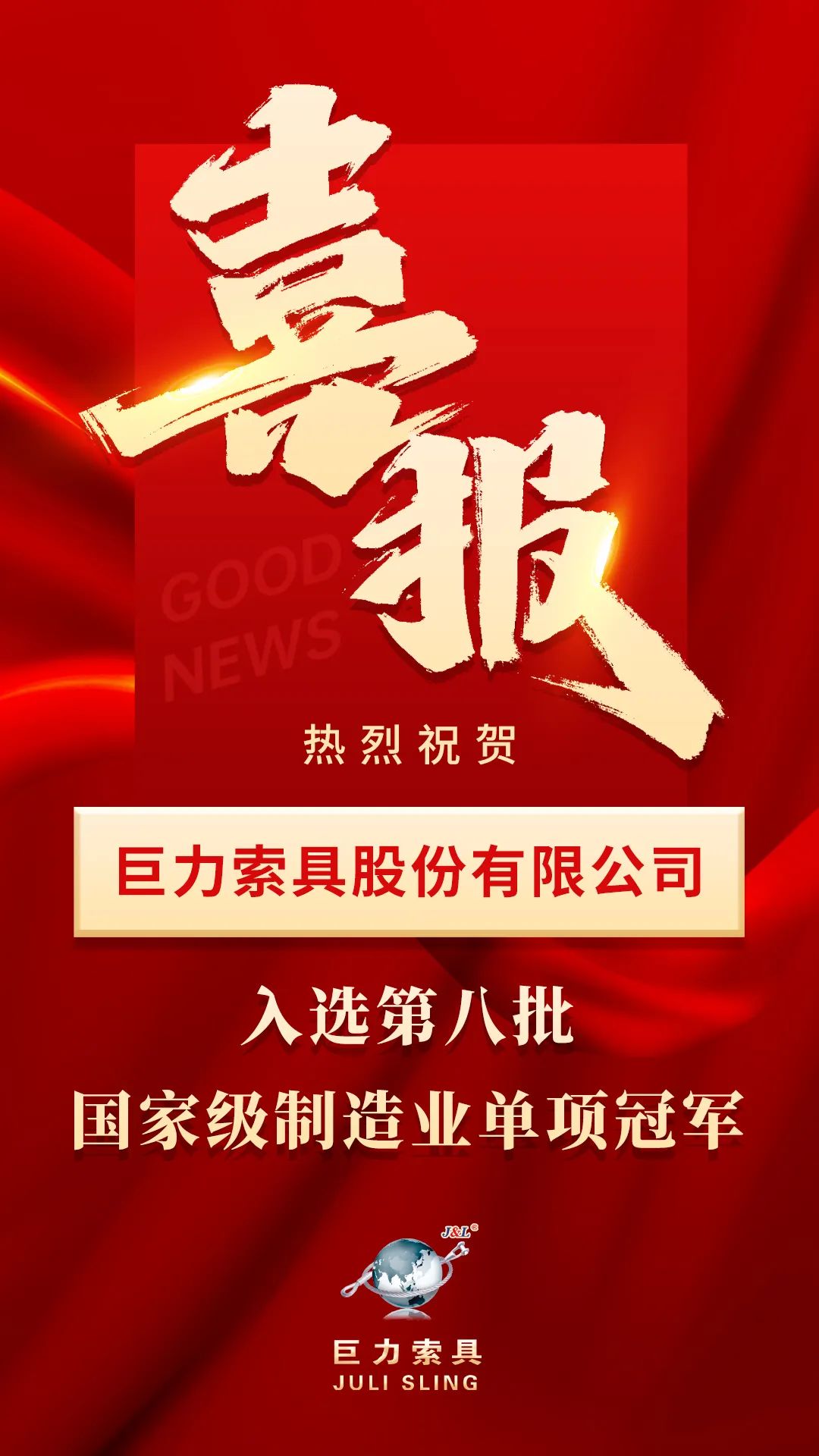 国度级声誉!巨力索具获评国度级制作业单项冠军企业