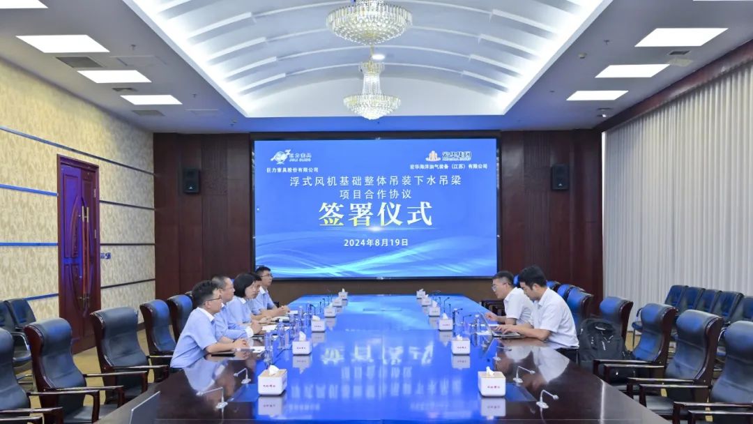 8月19日,巨力索具与宏华陆地油气设备(江苏)无限公司(以下简称宏华陆地)就“浮式风机根本全体吊装下水吊梁”签订名目协作和谈。巨力索具常务副总裁李彦英、宏华陆地副总司理吕岩别离代表两边签订和谈。巨力索具副总裁张海波、宏华陆地手艺副部长李博参与集会。