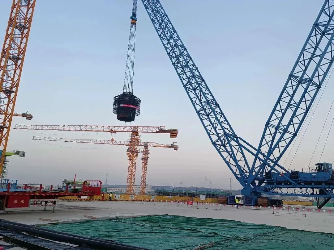 2021年11月18日5时36分,初冬清晨的徐大堡名目现场已灯火透明,伴跟着吊装总批示“起头吊装”一声令下,2600T履带吊清洁爽利的完成了起钩、变幅等一系列举措,于2021年11月18日8时36分顺遂完成了核岛堆芯竖井的吊装使命,用时3个小时,巨力索具为全部吊装进程供给配套索具,这是徐大堡核电3号机组自完工以来,初次大件吊装,为徐大堡核电3号机组反映堆厂房主体工程及关头途径施工打下了坚固根本。