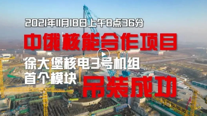 14月18日,徐大堡核电站建设3号空气能热泵堆芯竖井版块曙光装载垃圾箱接受任务,箭头着中俄原子能协同徐大堡核电站建设名头的首吊初心幸福美满曙光。
