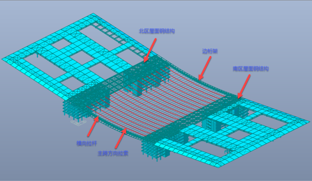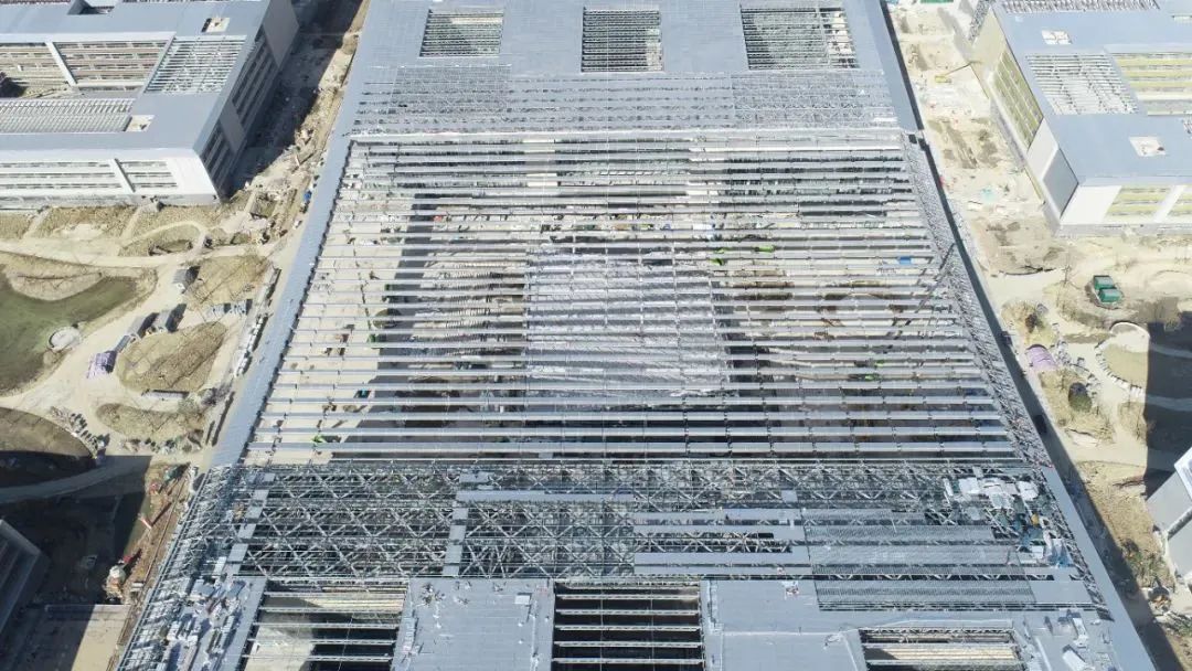 基座由行政楼、藏书楼、音乐厅、成长用房和大众讲授楼构成,统称为“中心组团”,是校内的研讨和进修中枢。大屋面钢布局系统,由北区钢桁架系统、中心区悬链线索布局和南区钢桁架系统构成,钢布局总量约8000吨。